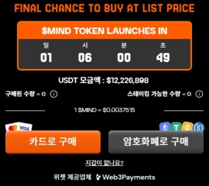 그리고 이제 프리세일이 종료되기까지 하루도 채 남지 않았으며 토큰은 금주 화요일에 공식적으로 출시가 된다. 프리세일을 통해 이미 1,200만 달러 이상 모금되었고, 토큰의 마지막 프리세일 단계의 가격은 단 0.0037515달러이다. 지금이 $MIND가 공개 시장에 출시되기 전에 토큰을 구매할 수 있는 마지막 기회이다.