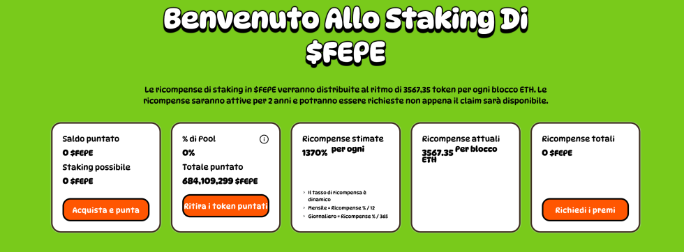 Non solo. I titolari di $FEPE possono mettere i loro token in staking nel protocollo nativo di Fantasy Pepe, in modo da ottenere un altra fonte di reddito.