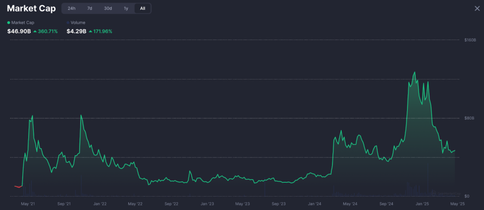 Le meme coin hanno dominato il mercato nel 2024, con token come Pepe, Bonk e Turbo che hanno raggiunto market cap multimiliardarie. Al suo apice, il segmento ha toccato una capitalizzazione di mercato di oltre 140 miliardi di dollari.