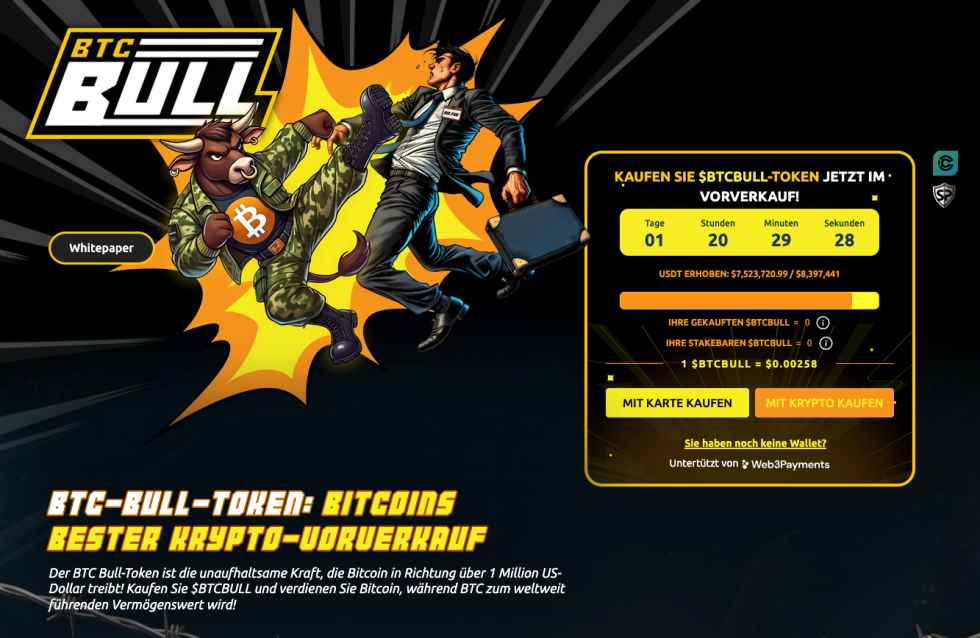 BTCBULL steht als Bitcoin Meme Token kurz vor dem ersten Börsenlisting