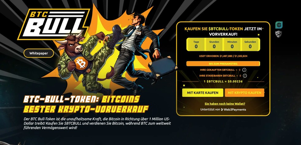 Bei einem Bitcoin-Kurs von 150.000 Dollar erhalten Investoren von $BTCBULL sogar echte Bitcoin als Airdrop, abhängig davon, wie viele Token sie in ihrer Wallet halten. Doch nicht nur die direkte Bindung an Bitcoin sorgt für Aufsehen, auch die extrem hohe Nachfrage in den ersten Tagen verführt Analysten zu bullishen Prognosen. In kürzester Zeit haben Anleger bereits $BTCBULL-Token im Wert von fast 1,5 Millionen Dollar gekauft, obwohl der Coin noch gar nicht an den Kryptobörsen gehandelt wird und aktuell noch im Vorverkauf erhältlich ist.