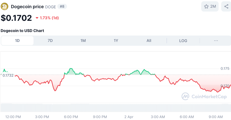 De Dogecoin koers balanceert op dit moment op het belangrijke niveau van $0,1702. Dit niveau was eerder een belangrijke weerstand. Een doorbraak door $0,179 kan de deur openen richting hogere stijgingen zoals de resistance op $0,206. Een val onder $0,16439 kan een daling naar de support op $0,14238 brengen.