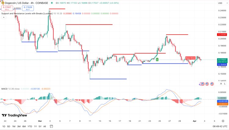 De Dogecoin koers laat korte termijn potentie zien, maar een doorbraak boven $0,206 is nodig voor meer vertrouwen. Het is belangrijk om voorzichtig te blijven. Zeker met de huidige onzekerheid op de markt.
