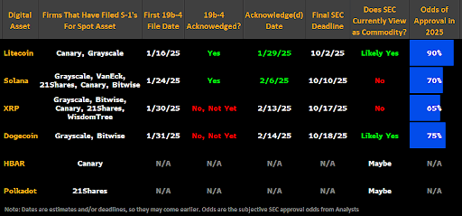 Seyffart and Balchunas predict that the SEC will likely acknowledge these Dogecoin and XRP ETFs this week. The deadline for the SEC’s decision on these funds does not start counting until the Commission acknowledges the 19b-4s. These market experts also believe that the SEC and Commissioner Hester Peirce’s crypto task force will untangle some of the security and commodity implications from lawsuits by year-end 2025.
