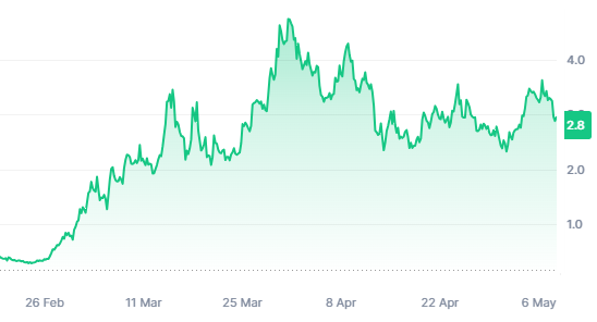 Popular Solana-based meme coin Dogwifhat (WIF) is still falling from an all-time high set on March 31st, having plummeted by double digits almost overnight. Trading at $2.9 right now, WIF has dropped 29% in just the last two weeks.