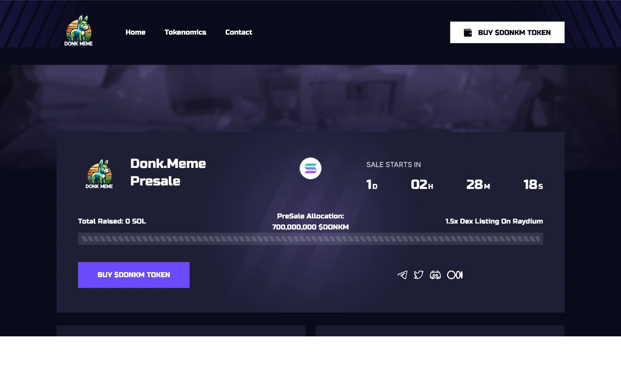 Engage with the Presale: Navigate to the Donk.Meme presale page and follow the instructions to contribute your $SOL.
