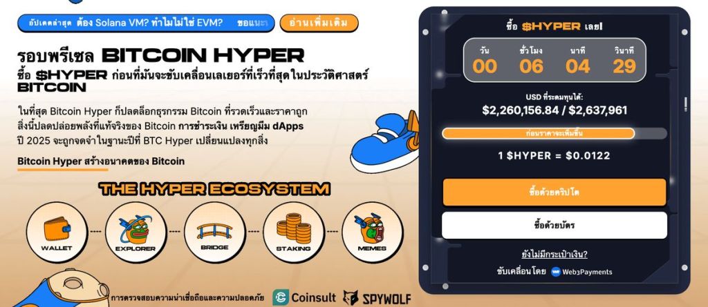 Bitcoin Hyper คือ Bitcoin Layer 2 ตัวแรกที่ออกแบบมาเพื่อแก้ไขข้อจำกัดหลักของ Bitcoin: transaction ที่ช้า, ค่าธรรมเนียมสูง และการขาด programmability Bitcoin Hyper แก้ปัญหานี้โดยการแนะนำ Layer 2 solution ที่ประมวลผล transactions ด้วย latency ที่ต่ำมาก ปรับปรุงความเร็วและลดต้นทุนอย่างมาก โดยการบูรณาการ Solana Virtual Machine (SVM) มันนำ smart contracts ที่รวดเร็วและปรับขนาดได้มาสู่ Bitcoin ecosystem