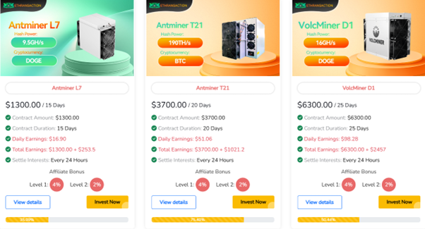 Step 1: Choose an ETHRANSACTION cloud mining service provider. The platform has a professional analyst and IT team who analyzes the hash rate generated by your mining rigs and promptly replaces them with the latest ones, ensuring users receive the highest returns from cloud mining. If you’re worried about missing out on investment opportunities, now is the perfect time to join cloud mining.