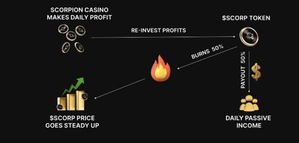 Scorpion Casino provides passive income opportunities to investors through two primary methods; platform revenues and transaction taxes.