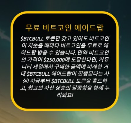 하지만 가장 큰 관심을 끄는 부분은 에어드랍에 있다. 모두에게 무료로 증정하는 일반적인 에어드랍과는 달리, $BTCBULL은 베스트 월렛(Best Wallet)에서 토큰을 구매해 보유하고 있는 사람에게만 제공한다.
