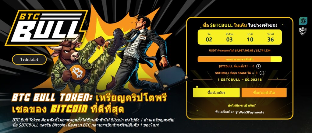 ในขณะที่ราคา ETH กำลังฟื้นตัว สัญญาณบวกในตลาดคริปโตยังส่งผลต่อ Bitcoin ซึ่งมีแนวโน้มจะฟื้นตัวตามกันด้วย ปรากฏการณ์นี้เปิดโอกาสให้กับ BTC Bull Token ($BTCBULL) ที่ออกแบบมาเพื่อเติบโตไปพร้อมกับ Bitcoin โดยตรง ด้วยกลไกการเผาเหรียญอัตโนมัติทุกครั้งที่ราคา Bitcoin เพิ่มขึ้น 25,000 ดอลลาร์