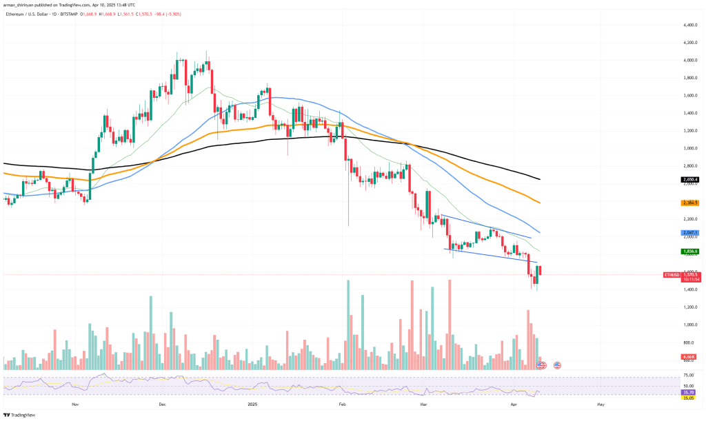 อย่างไรก็ตาม มีโอกาสที่ ETH อาจเกิดรูปแบบ Double Bottom หากพบจุดต่ำสุดระหว่าง 1,500-1,600 ดอลลาร์ การฟื้นตัวจากจุดนี้อาจจะนำไปสู่การดีดกลับไปแตะ 2,000 ดอลลาร์ อีกครั้ง โดยเฉพาะหากมีปริมาณการซื้อขายเพิ่มขึ้นและตลาดคริปโตเคอร์เรนซีโดยรวมฟื้นตัว