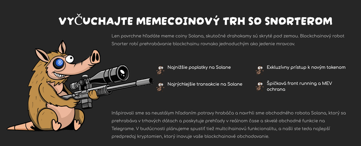 Na rozdiel od väčšiny botov fungujúcich na Ethereum, Snorter ťaží z extrémnej rýchlosti a nízkych nákladov Solany. S exekučnými poplatkami pre držiteľov tokenu SNORT len 0,85 % ide o ideálnu možnosť pre vstup do nových projektov. Vďaka vlastným nástrojom totiž dokáže zachytiť vytvorenie liquidity poolu v reálnom čase, teda ešte skôr, než sa objaví na rôznych DEX trackeroch.