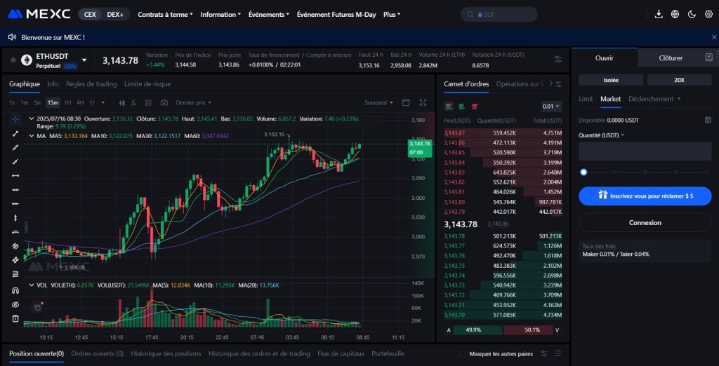 - MEXC : Levier x500 et frais bas pour le trading Ethereum Future