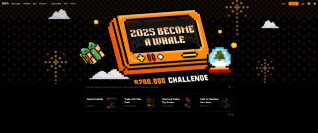 За съжаление са достъпни само вечни фючърси. Често инвеститорите, фокусирани върху анонимността, оценяват свободата на доставчика от KYC (с лимит за теглене до 25 000 USD на ден), което я позиционира като крипто борса без верификация (KYC). Платформата обхваща над 500 монети, а редовните търговски състезания и доходоносната програма за награди са предназначени да насърчават ангажираността на потребителите.