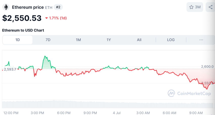 De Ethereum koers knalde deze week kortstondig boven de $2.590 na een nieuw record aan gestakte ETH. Toch is de koers sindsdien licht gedaald en staat op het moment van schrijven rond de $2.550, een min van 1,71% in de afgelopen 24 uur. Het sentiment blijft gemengd. Bullish signalen botsen met waarschuwingslampjes op de on-chain data.