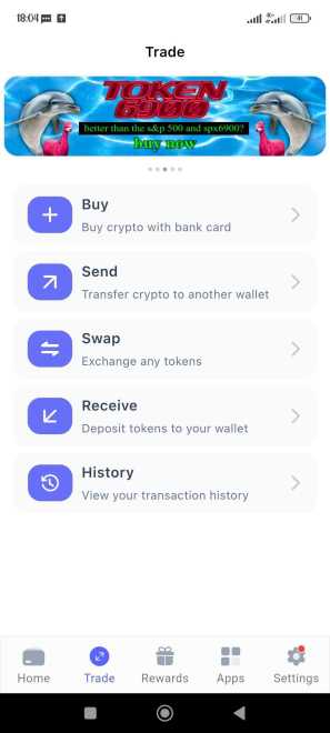 Dari Bitcoin, Ethereum, hingga meme coin, semua ada. Ketuk “Trade” lalu “Buy”, dan pilih koin yang ingin Anda beli.