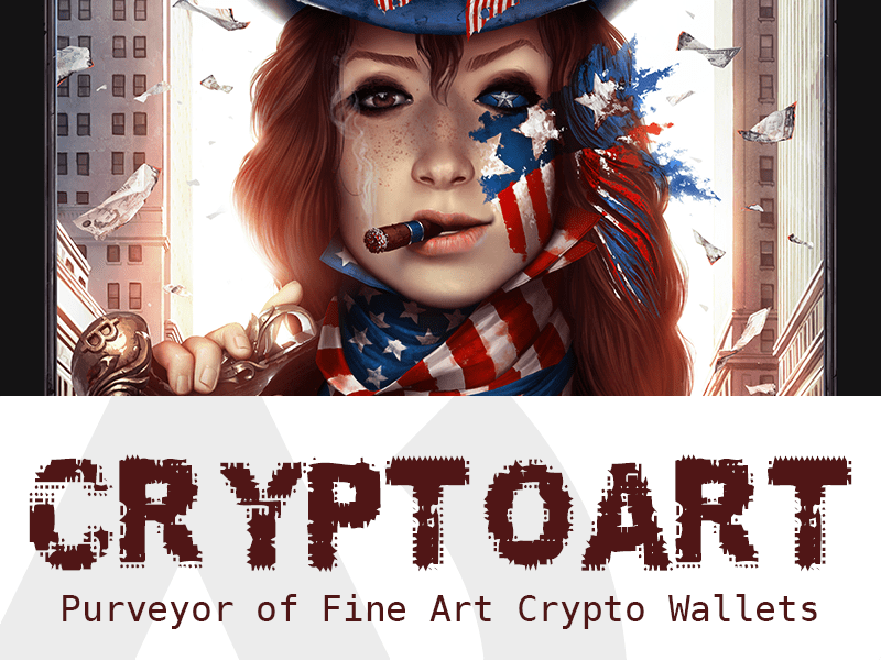 Cryptoart.com publishes fine art wallets called CryptoArt. CryptoArt is fine art that stores digital currency. Our mission is to find exceptional artists and encourage them to comment on the cryptocurrency movement. We then use that imagery to publish limited edition fine art wallets.