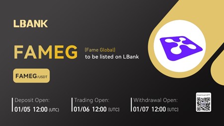 INTERNET CITY, DUBAI, Jan 6, 2023 – LBank Exchange, a global digital asset trading platform, has listed Fame Global (FAMEG) on January 6, 2023. For all users of LBank Exchange, the FAMEG/USDT trading pair is now officially available for trading.