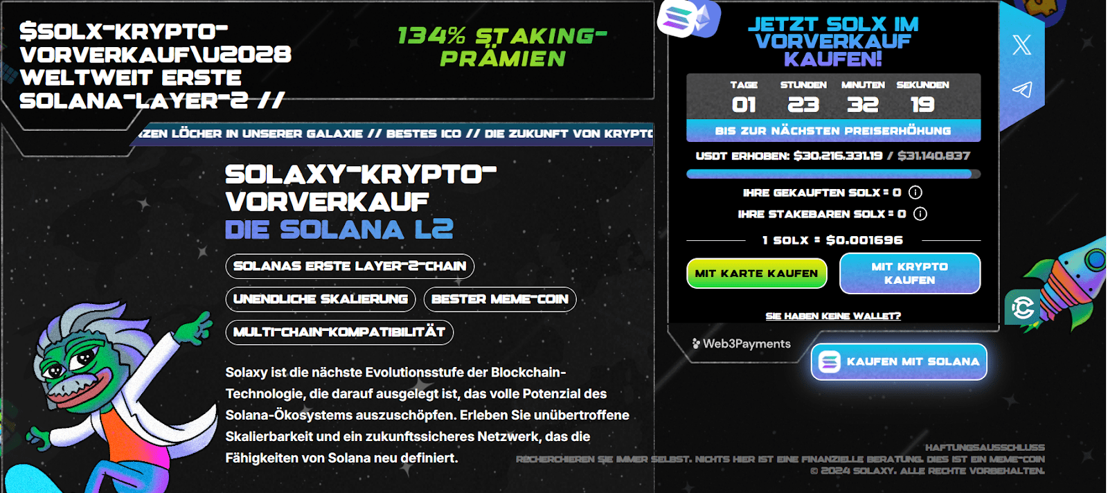 Jetzt rechtzeitig einsteigen und Solaxy im Presale kaufen.