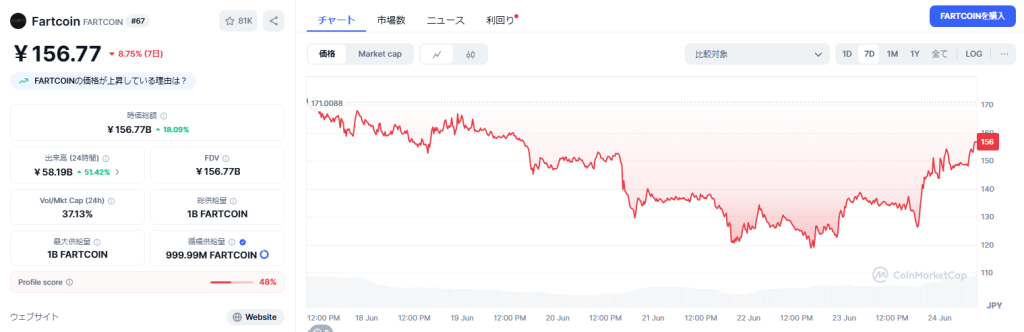 Fartcoinはその名の通り、ユニークな特徴を持つソラナ(Solana)基盤のミームコインで、取引時に「おなら音」が鳴るという仕様が特徴だ。
