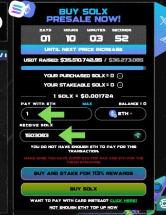 Now it’s time to buy however many tokens you want. Simply type in the dollar or $ETH amount you want to spend to see how many you’ll receive in return. When you’re done, click “Buy $HYPER”.