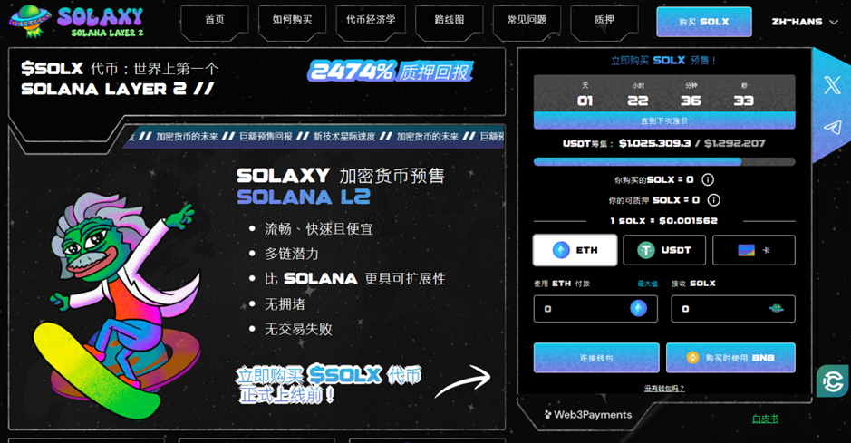 增長最快的加密貨幣之一是Solaxy,它是Solana區塊鏈上的首個Layer-2解決方案Solaxy旨在提升 Solana 的可擴展性,並為代幣持有者提供質押獎勵。截至目前,Solaxy 的預售已籌集超過4200萬美元。