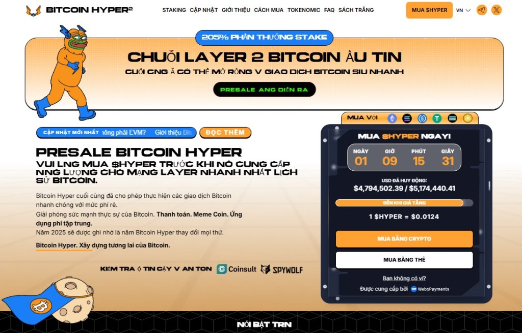 Bitcoin Hyper ($HYPER)là một dự án Layer-2 đột phá dành cho Bitcoin, nhằm nâng cao tốc độ giao dịch và mở rộng khả năng ứng dụng DeFi cho BTC. Sử dụng Solana Virtual Machine (SVM)và Canonical Bridge, Bitcoin Hyper cho phép kết nối mượt mà giữa mạng BTC gốc và nền tảng mới hỗ trợ hợp đồng thông minh – điều mà Bitcoin trước đây không làm được.