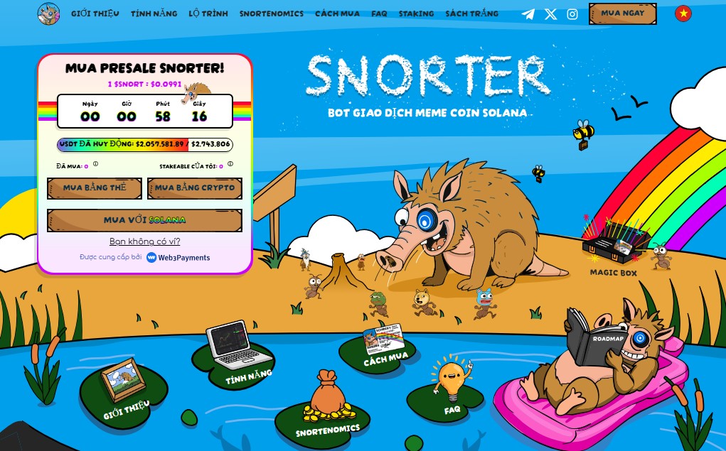 Presale của $SNORT đã huy động hơn 2 triệu USDvà ghi nhận 13,5 triệu token được stakevới lãi suất lên đến 184% APY– minh chứng cho sự quan tâm mạnh từ cộng đồng. Dự án đang mở rộng đa chuỗi sang Ethereum, BNB Chain và Polygon, trong khi smart contract đã được audit và tiến độ cập nhật minh bạch.