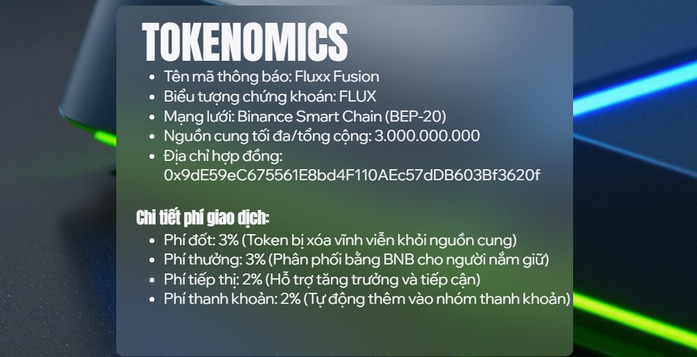 Fluxx Fusion sử dụng mô hình token BEP-20 trên Binance Smart Chain với tổng cung cố định 3.000.000.000 FLUX.