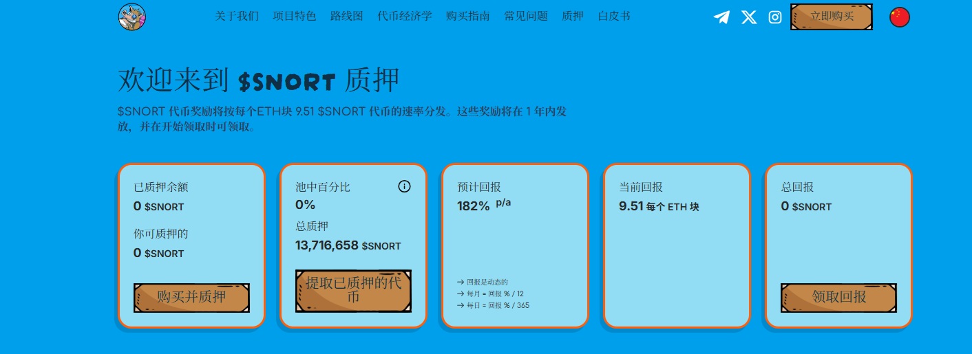 它具備 Meme 幣的幽默感與病毒式傳播特質,但 SNORT 不止於此 —— 它還是 Snorter Bot 生態系統中的效用型代幣。持有 SNORT 不僅可將交易手續費降至行業最低,還能解鎖質押獎勵,目前的動態年化收益率(APY)高達 183%。