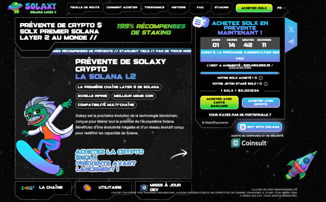 Dans les cryptomonnaies à fort potentiel, nous retrouvons Solaxy, proposant une réelle valeur ajoutée : construire le premier L2 sur Solana. Lorsqu’on constate le développement de la narrative sur Ethereum, il est certain qu’il y a un très gros potentiel pour la seconde blockchain du marché.