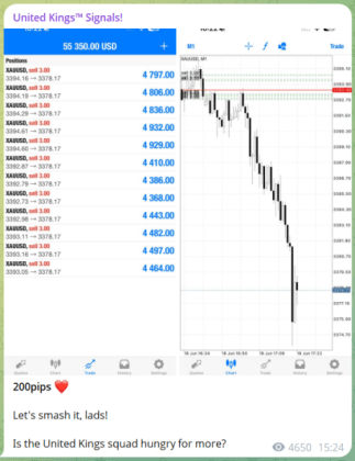 United Kings posts one to two free forex signals directly on its official Telegram channel every day.