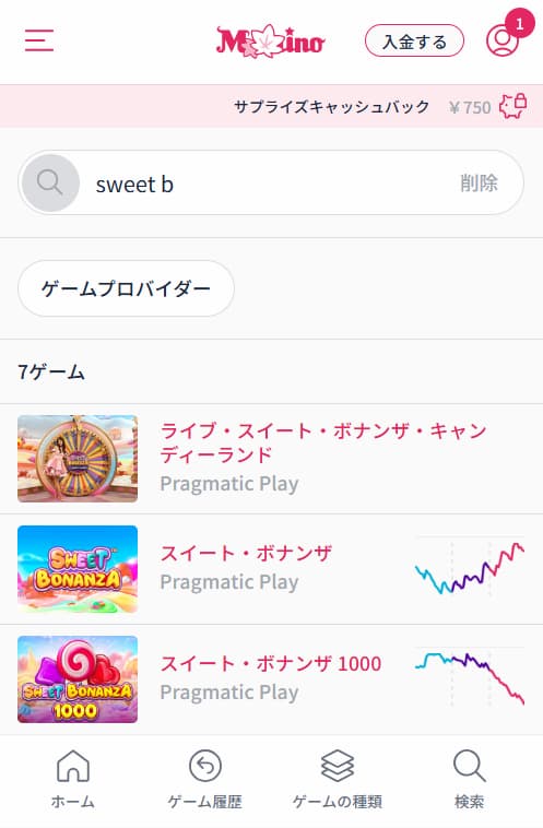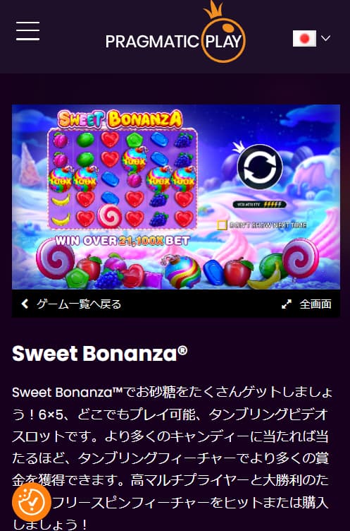 まずはオンラインカジノにログインしてゲーム欄からスイートボナンザを検索します。