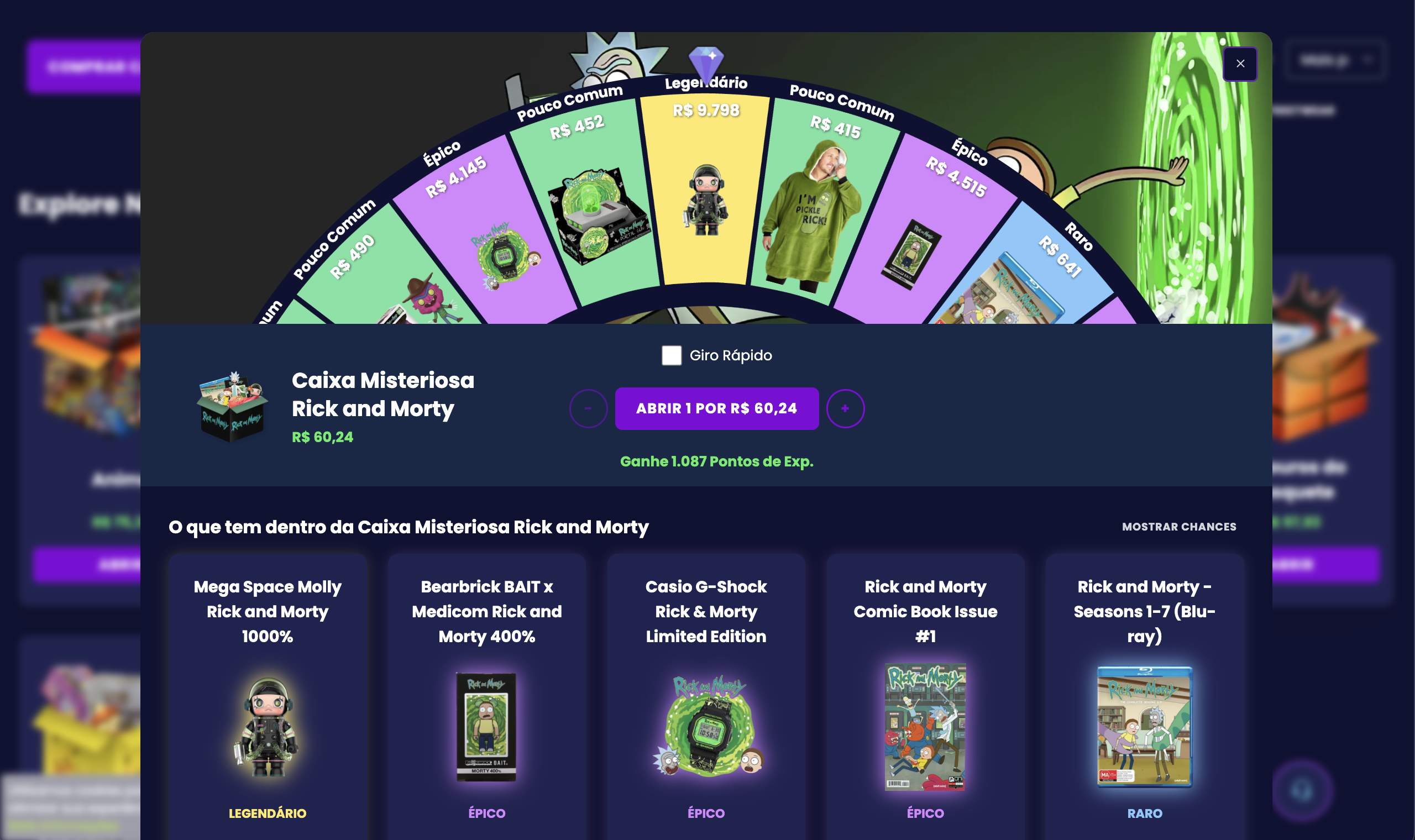 - Transparência nas probabilidades: Antes de abrir qualquer caixa, você vê exatamente quais itens estão disponíveis e quais são as chances de ganhar cada um deles.