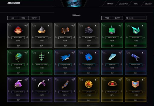 Avatars in the ArchLoot, monsters come in loot-style NFT parts. UGC elements are the single most unique part of the game. Gamers can freely assemble their monsters from a whole NFT directory, which includes the torso, head, upper limb, lower limb, and accessory. The torso is essential and has many more ill shapes that exceed your expectation, starting from which the rest can be chosen, adjusted, and attached.