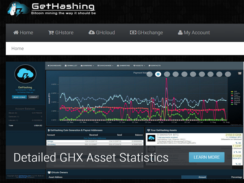 To power the platform, GetHashing issued their unique smart asset mining shares. This smart asset is backed by physical hardware and generates income; it allows for the platform to enable decentralized cloud mining.