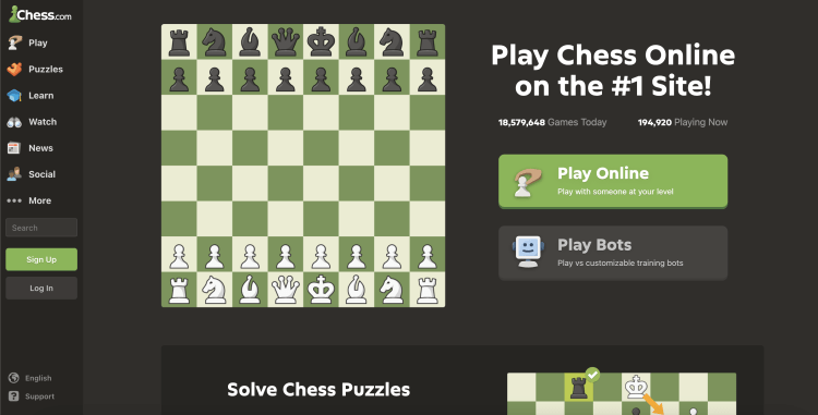 Op Chess.com kun je verschillende schaakpuzzels oplossen. Ook kun je tegen bots spelen en online tegen echte tegenstanders. Bij Chess.com is iedereen welkom, of je nu beginnend of een ervaren schaker bent. Je kunt op de site verschillende lessen volgen om de kunst van het schaken te leren.