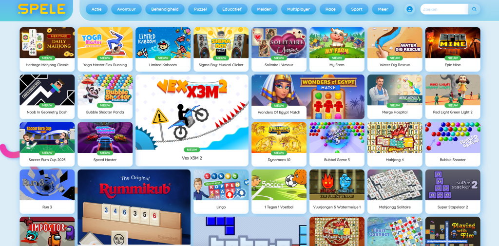 Een oude klassieker is Spele.nl. Veel van ons zullen vroeger uren op deze site doorgebracht hebben. Op Spele.nl kun je kiezen uit meer dan duizend spellen. Of je nu een behendigheidsspel of een race spel zoekt, Spele.nl heeft het allemaal.