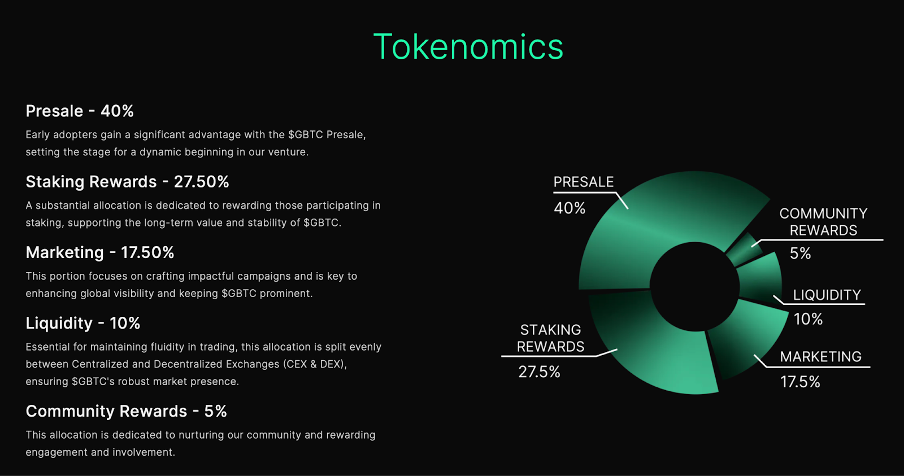 By giving primary importance to driving organic demand through a utility ecosystem, the project aims to cultivate sustainable value for its native token, $GBTC.