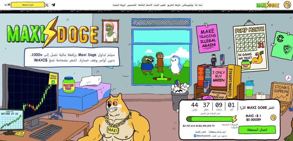 - Maxi Doge (MAXI): عملة مبنية على شبكة إيثيريوم، تركز على بناء مجتمع تفاعلي وتتميز بعقود ذكية خضعت للتدقيق الأمني لضمان الشفافية والوضوح.