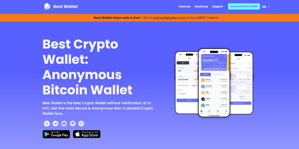 Best Wallet là ví tiền điện tử được khuyên dùng cho những người muốn mua Harry Hippo. Với giao diện thân thiện, bảo mật hàng đầu và hỗ trợ đa chuỗi, Best Wallet là lựa chọn lý tưởng cho cả người mới bắt đầu và nhà giao dịch có kinh nghiệm.