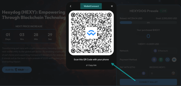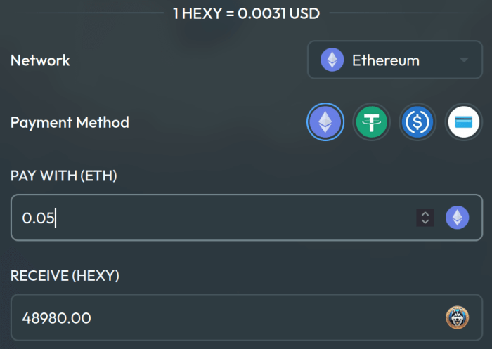 This is where you’ll access the live $HEXY token presale widget and all relevant purchase details.