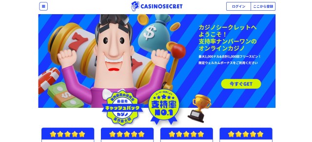 大手オンカジとしての信頼感は厚く、初心者はまずここから始めるといわれるほど有名なオンラインカジノです。