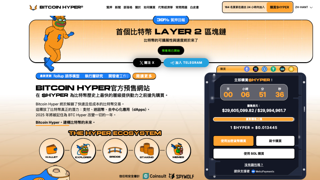 把焦點拉回 Bitcoin Hyper,它的賣點很直接:號稱「史上第一個 Bitcoin Layer 2」,並主打 SVM(Solana 虛擬機)整合,訴求是把高速智慧合約執行帶進 Bitcoin 生態,同時用 Bitcoin L1 做結算、L2 做即時執行。更激進一點的說法是:它想做到「比 Solana 本身還快」的執行體驗——這句話很大,但也因此更需要盯緊後續的實測與生態落地(不然就只是行銷煙火)。說到底,能不能交付,市場會用數據說話。