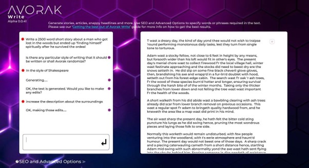 The platform has an artificial intelligence mechanism called Avorak Write that aims to help writers develop unique, high-quality content. The system uses internet scraping with a pre-written language mechanism, which reduces plagiarism, unlike other AI chatbots, which only use internet scraping methods without utilizing pre-written language resulting in plagiarism and errors. Avorak Write provides tools for editing and detecting plagiarism.