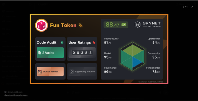 FunToken’s recent breakout, marked by a 35% 7-day price gain and a 74% surge in trading volume, is drawing attention, but savvy investors understand that price is only one part of the story. The real value lies in FunToken’s expanding ecosystem, network traction, and growing utility. With a fixed token supply, an active burn mechanism that recently removed 25 million FUN from circulation, and a clean CertiK audit (Skynet Score: 88.5), the fundamentals are solid. The roadmap isn’t just aspirational, it’s being executed, with upcoming product launches like a staking-enabled web wallet, a mobile app offering 5% APY, and a multi-chain bridge planned for Q1 2026.