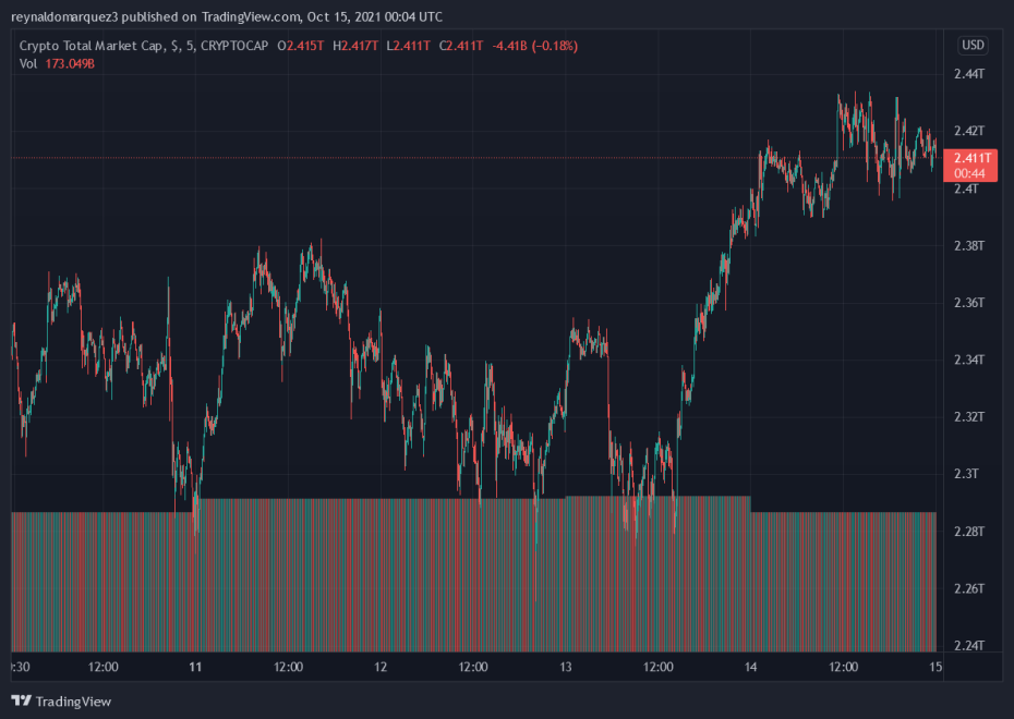 At the time of writing, the total crypto market cap sits at $2.41 trillion and approaches its pre-crash levels in the weekly chart.
