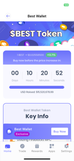 $BEST代幣在預售階段採取了獨特的方式,與大多數新加密項目不同。 在預售的前兩週,該代幣將僅在Best Wallet應用程式上獨家發售 。兩週結束後,後續銷售將向公眾開放。