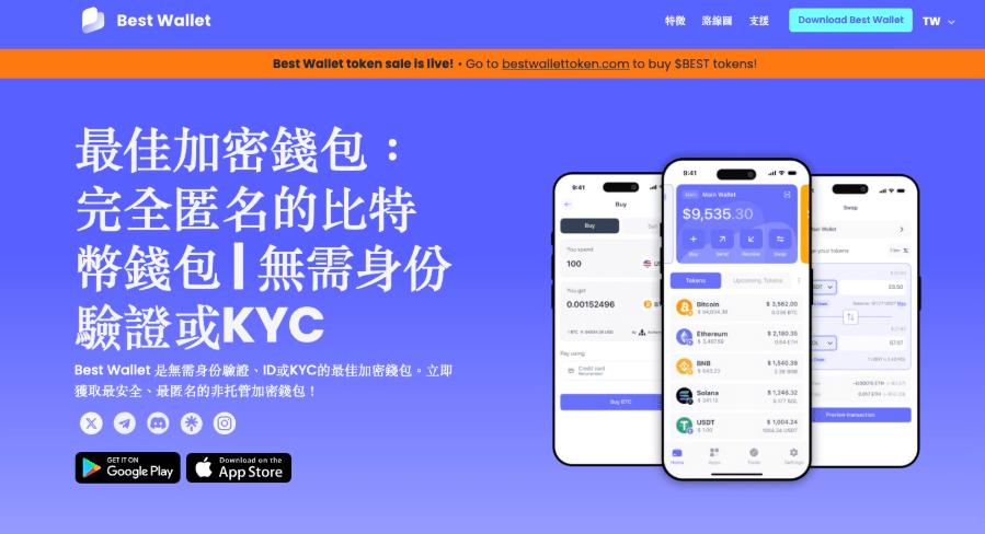 如果您習慣使用中心化交易所,您也可以選擇在 Binance、Coinbase 等平台購買 ETH 或 USDT,並將資產轉帳至您的 Best Wallet 地址。